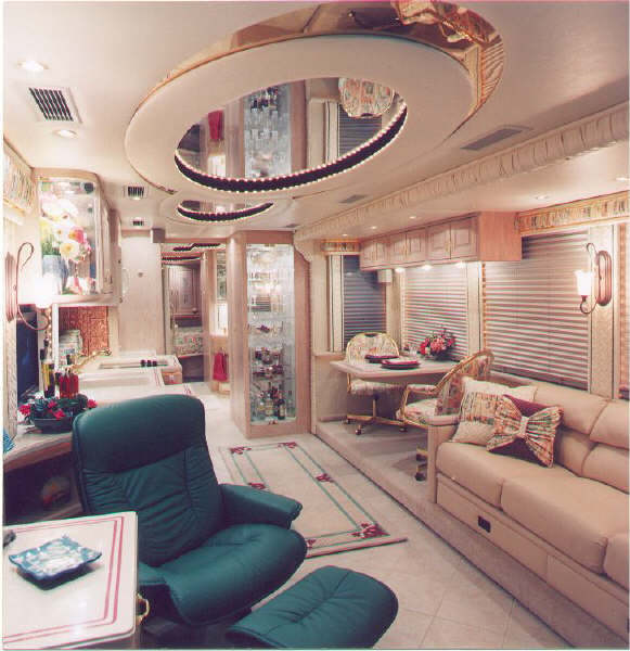 This coach flooring is designed with solid granite tile. The style and durability make this coach a true "one of a kind!"